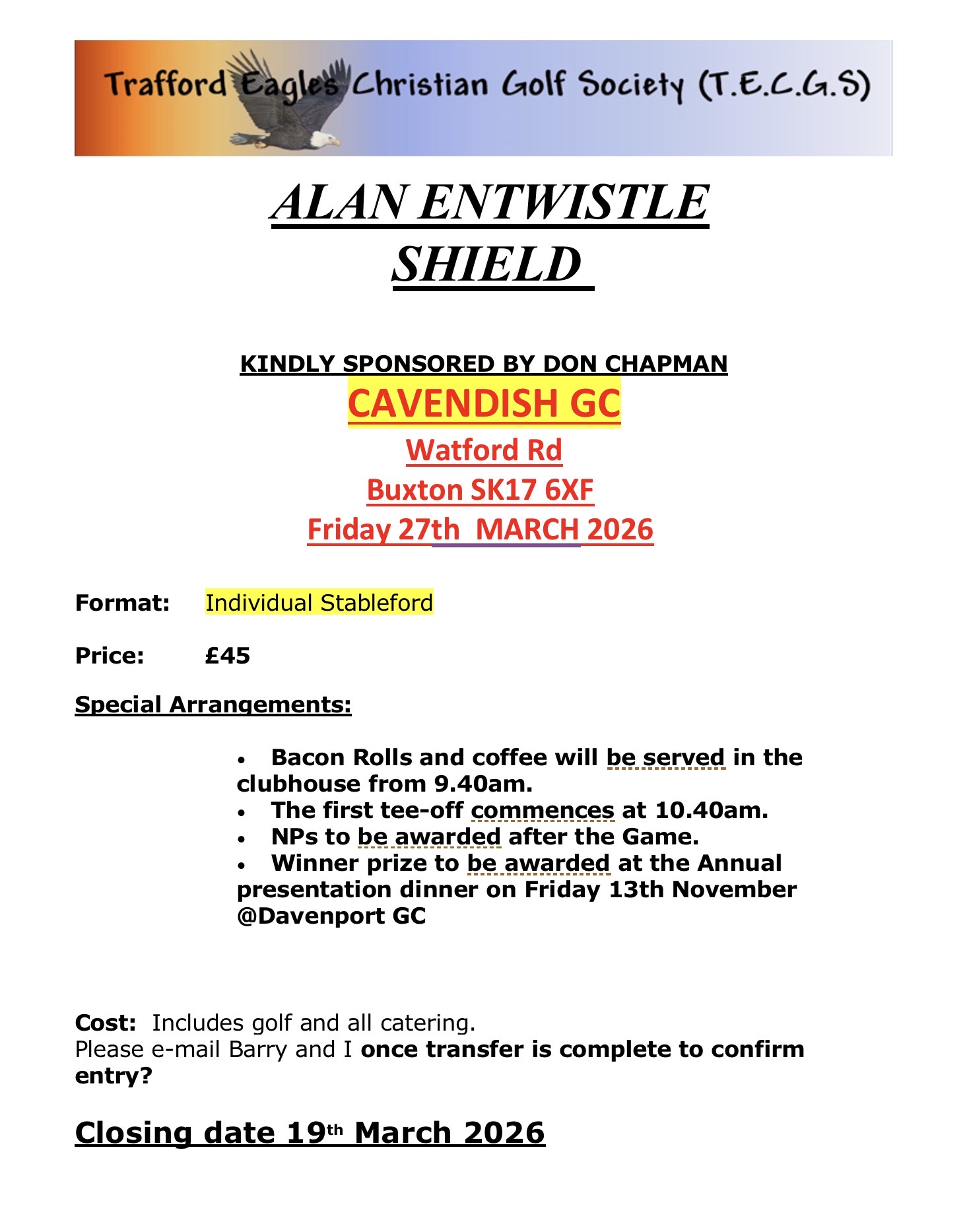 March 27th – Alan Entwistle Shield